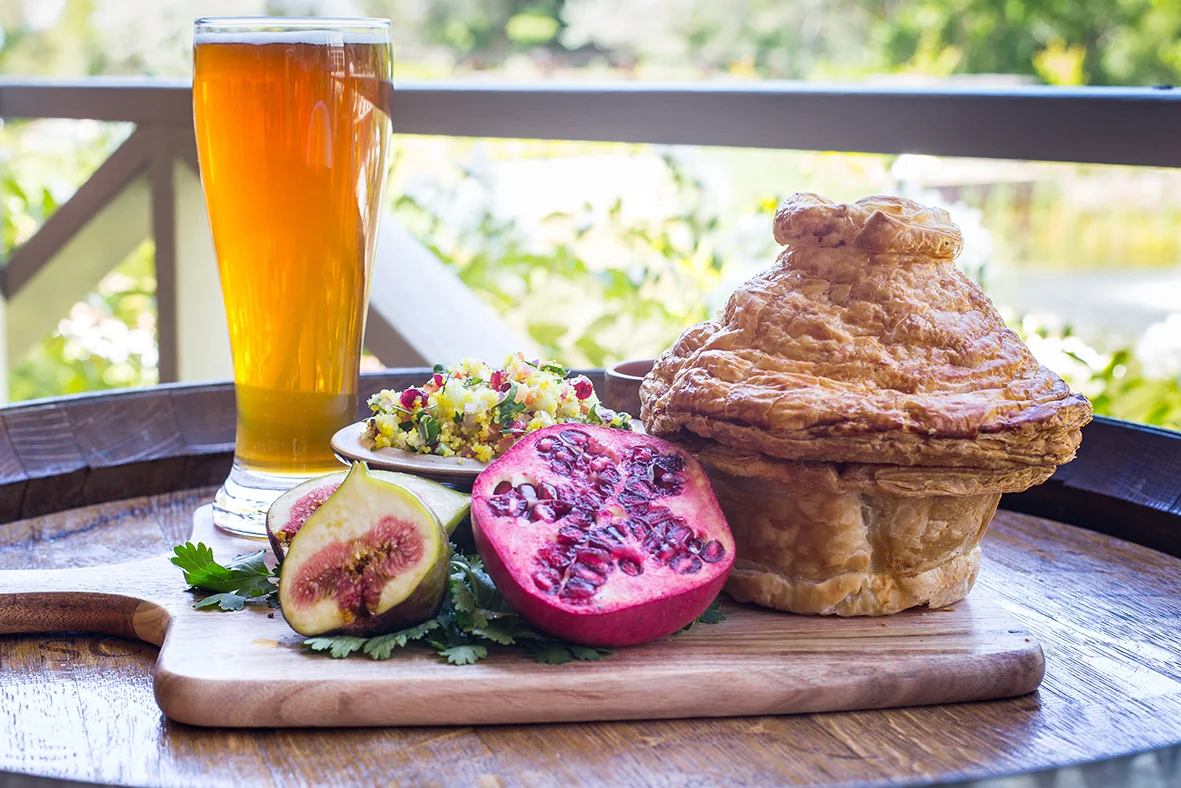Slow-cooked Victorian lamb shank with Meredith Goat Cheese and baby spinach in traditional pastry crust - our Nanna Norma’s recipe, served with house-made beetroot chips. Perfect to enjoy with a Red Duck Amber Ale or Hellbilly Roasting coffee.